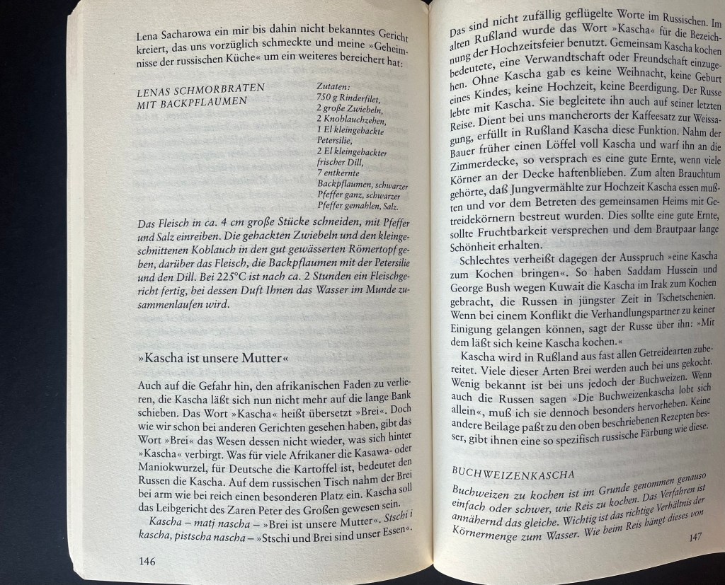 Pot roast with prunes, above a mediation on the importance of kasha: “The word porridge doesn’t capture the essence of what lies behind kasha.”